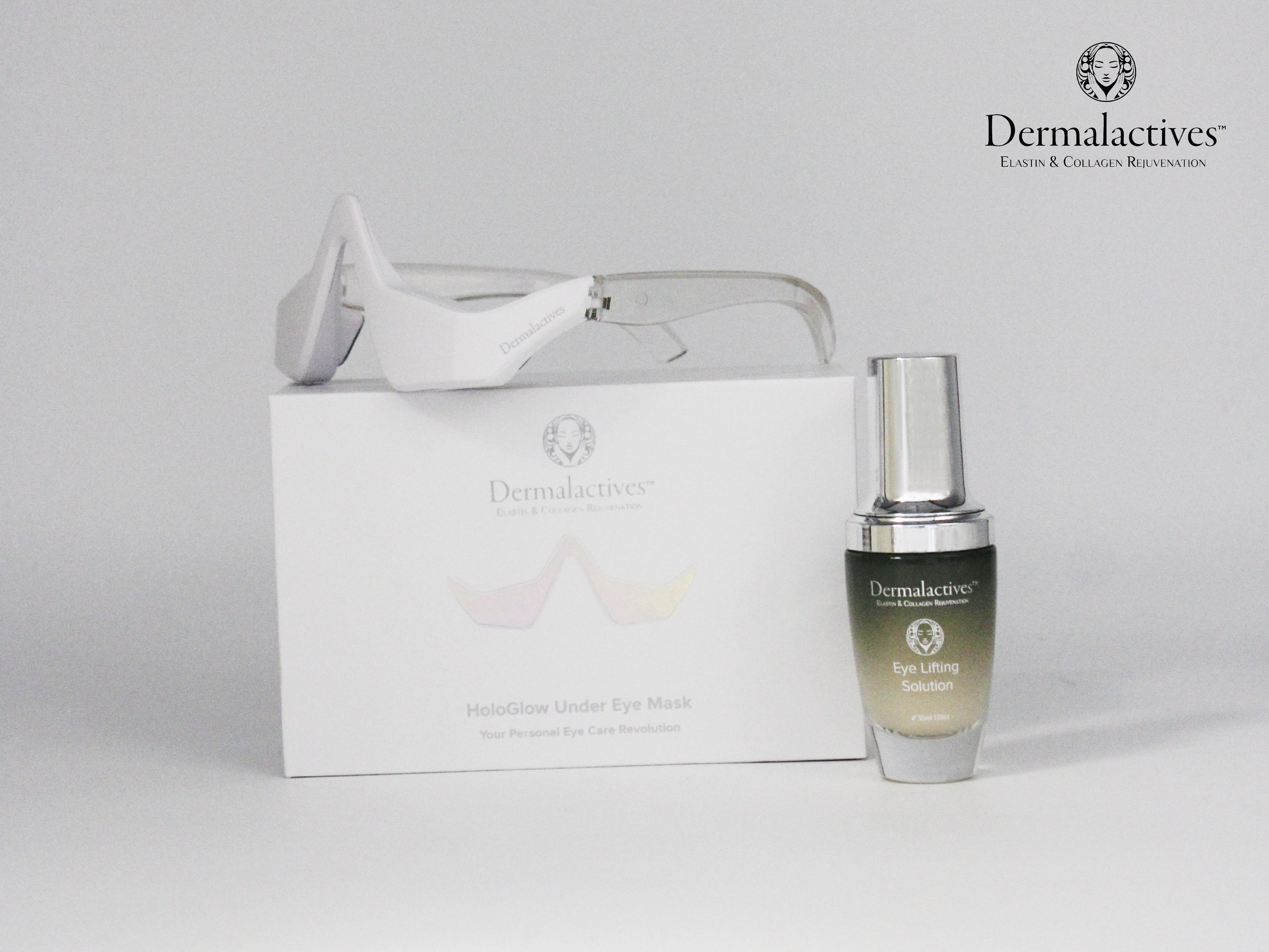 Professional eye treatment combining HoloGlow Under-Eye Mask with Eye Lifting Collagen Solution. Targets puffiness, dark circles, and fine lines for a refreshed, youthful look.
